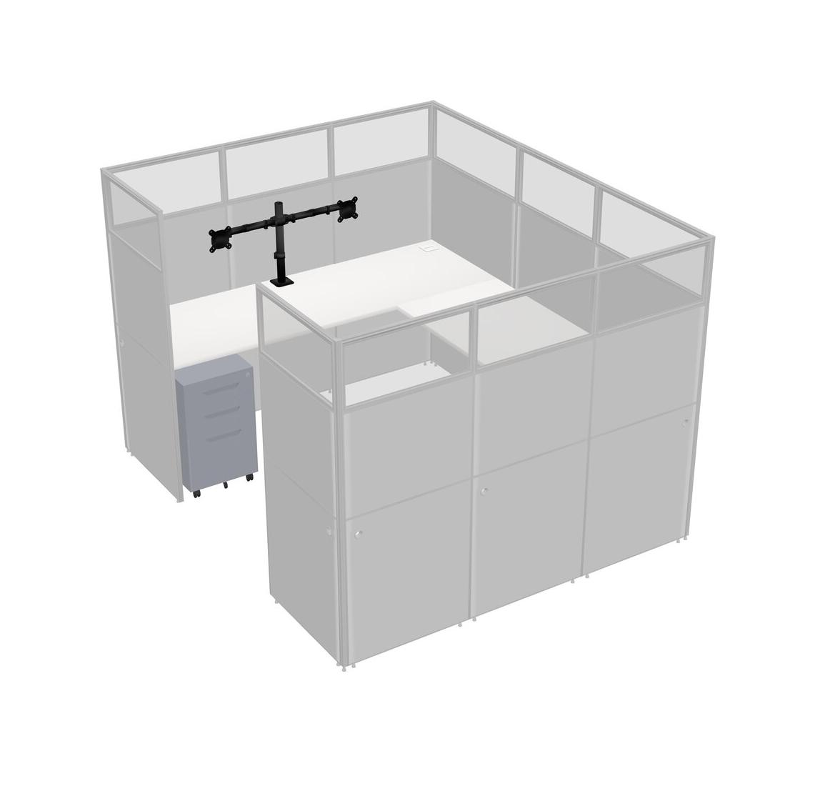 Système De Panneaux Blancs En U Pour 1 Personne + Bras D'écran (bras Doubles) + Tiroirs Mobiles En Métal Pour 1 Utilisateur(s)