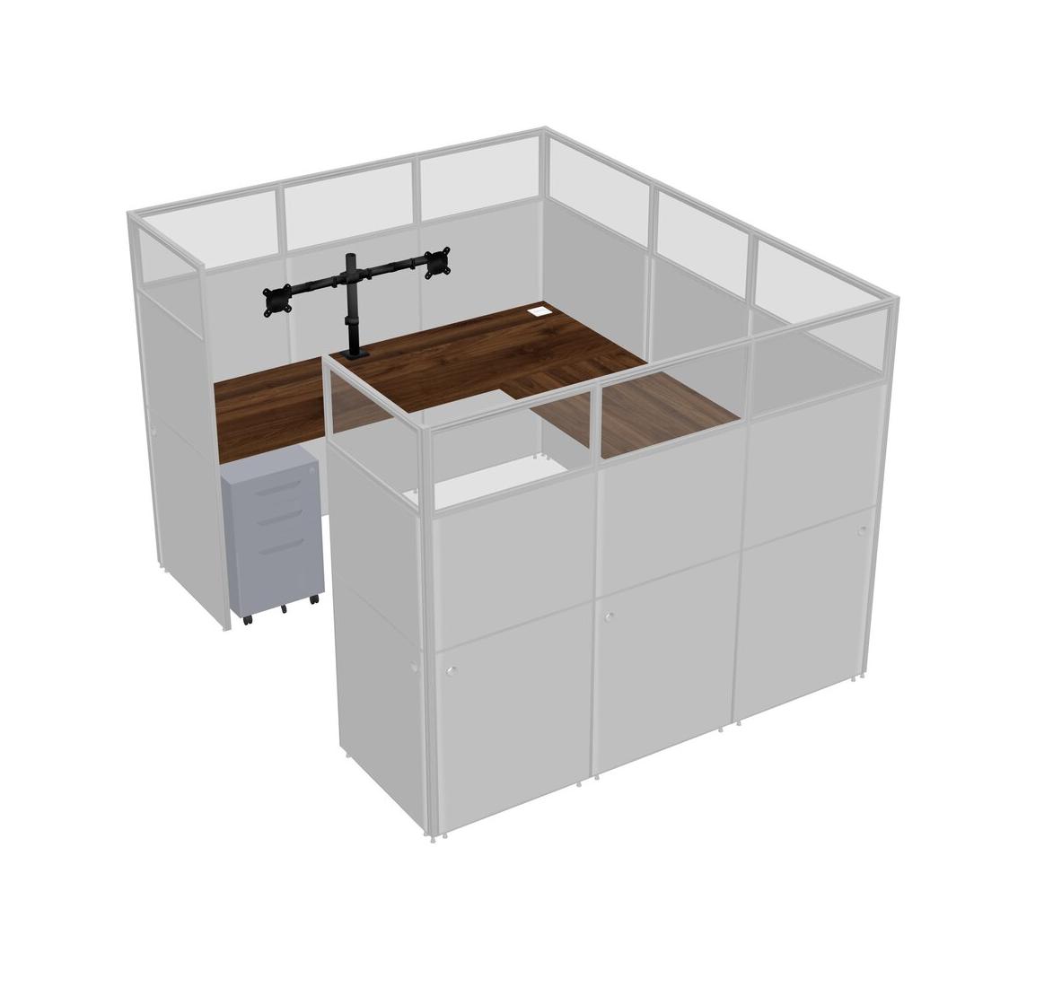 Système De Panneaux En U En Noyer Columbia Pour 1 Personne + Bras D'écran (bras Doubles) + Tiroirs Mobiles En Métal Pour 1 Utilisateur(s)