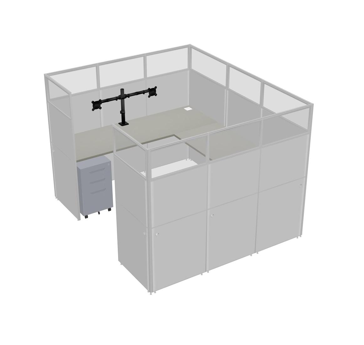 Système De Panneaux En U Grey Shadows Pour 1 Personne + Bras D'écran (bras Doubles) + Tiroirs Mobiles En Métal Pour 1 Utilisateur(s)