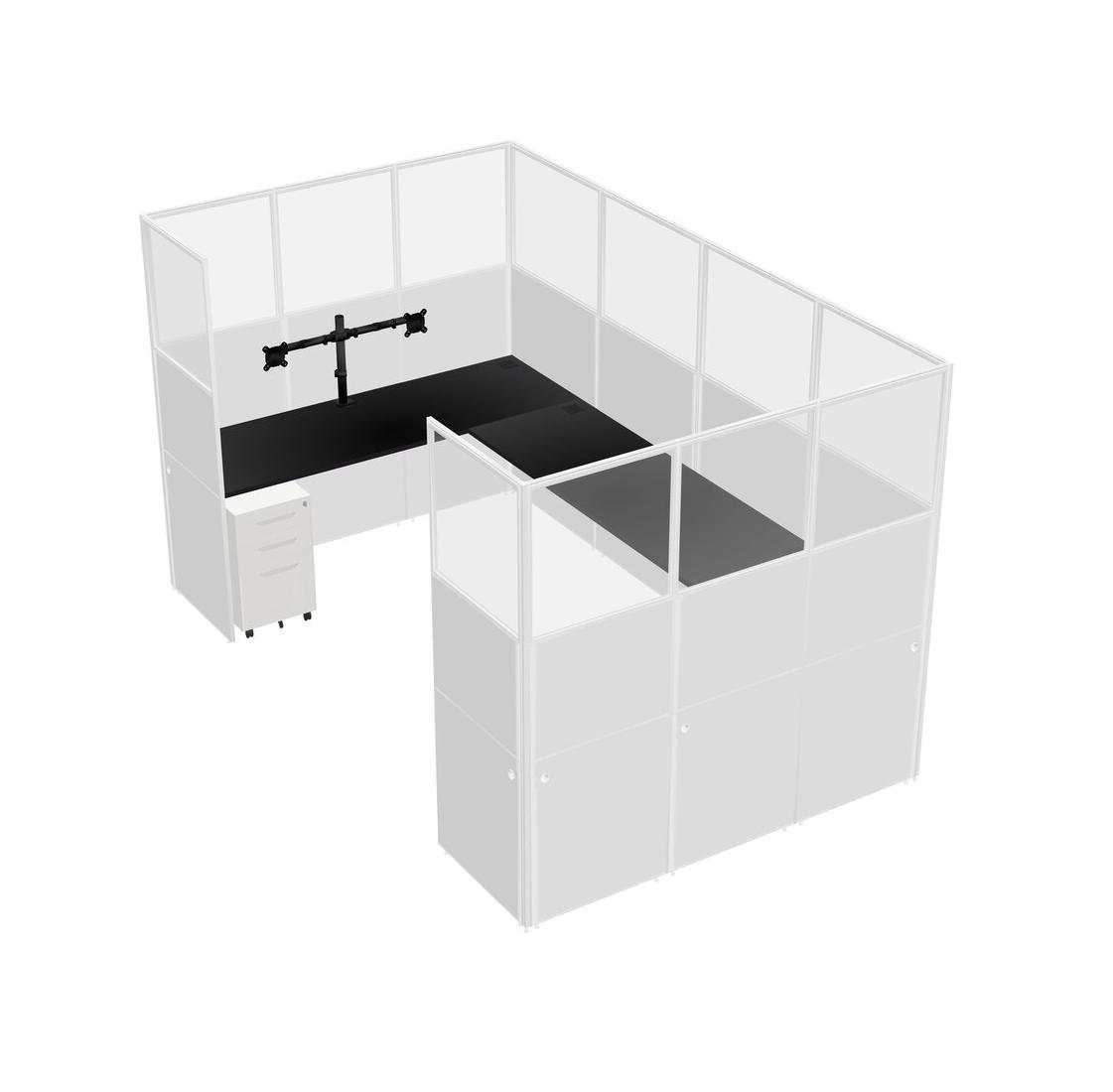 Système De Panneaux En U Noir Pour 1 Personne + Bras D'écran (bras Doubles) + Tiroirs Mobiles En Métal Pour 1 Utilisateur(s)