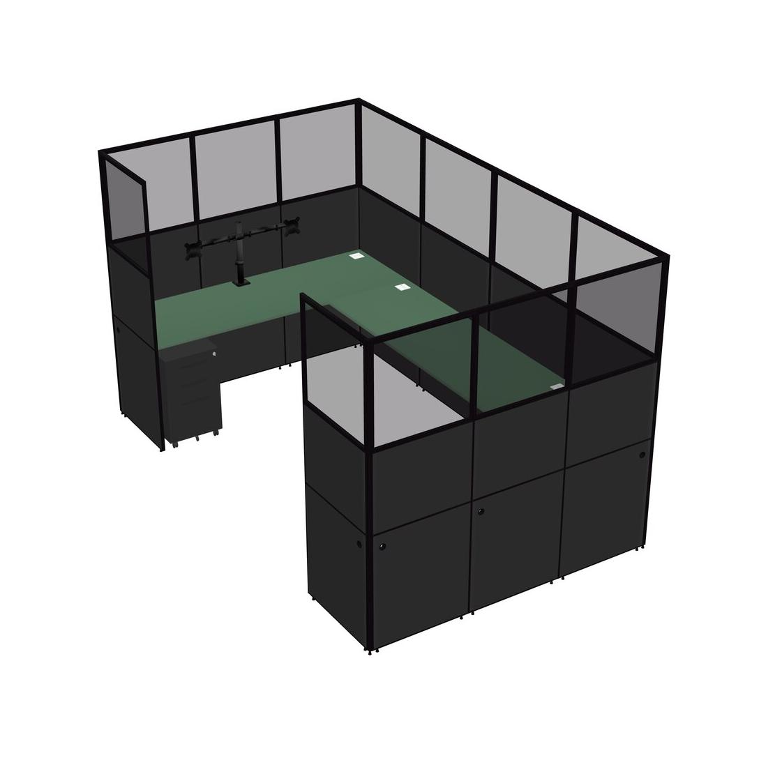Système De Panneaux Verts En U Pour 1 Personne + Bras D'écran (bras Doubles) + Tiroirs Mobiles En Métal Pour 1 Utilisateur(s)