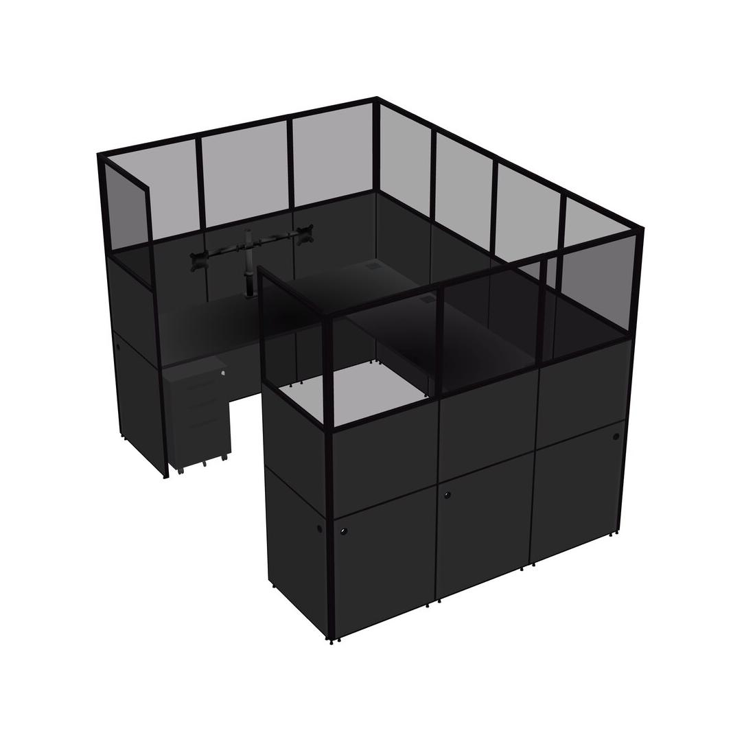Système De Panneaux En U Noir Pour 1 Personne + Bras D'écran (bras Doubles) + Tiroirs Mobiles En Métal Pour 1 Utilisateur(s)