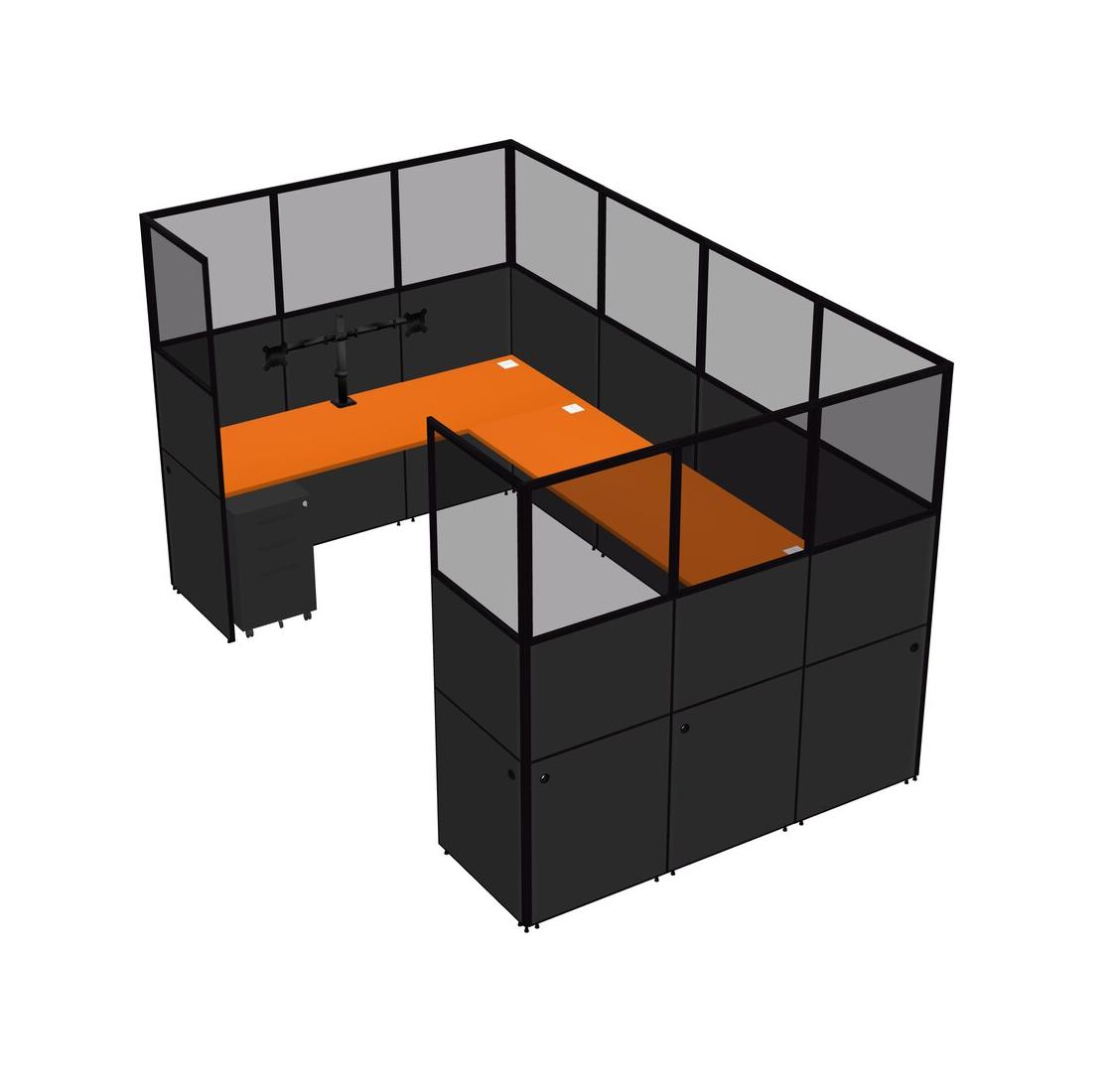 Système De Panneau En U Orange Pour 1 Personne + Bras D'écran (bras Doubles) + Tiroirs Mobiles En Métal Pour 1 Utilisateur(s)