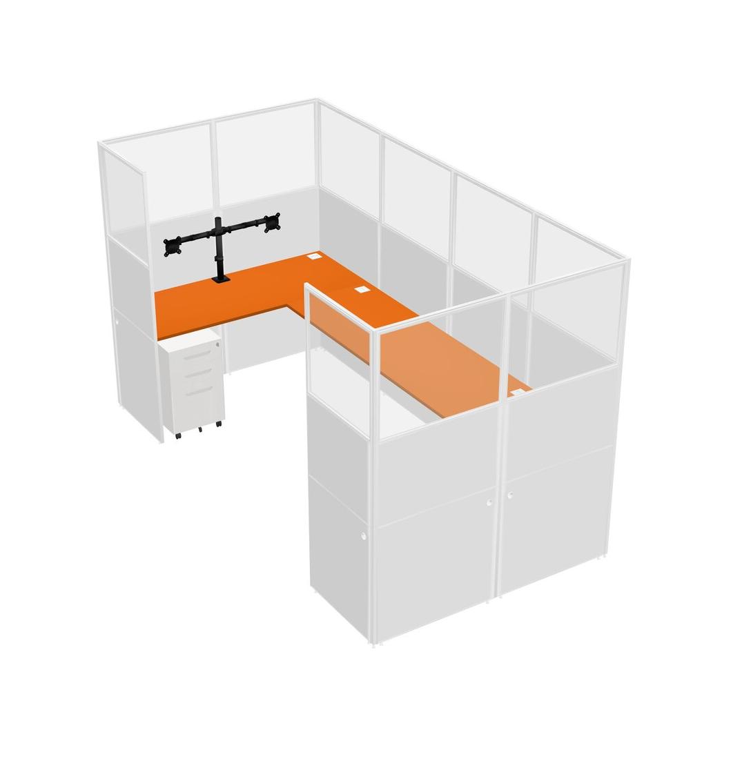 Système De Panneau En U Orange Pour 1 Personne + Bras D'écran (bras Doubles) + Tiroirs Mobiles En Métal Pour 1 Utilisateur(s)