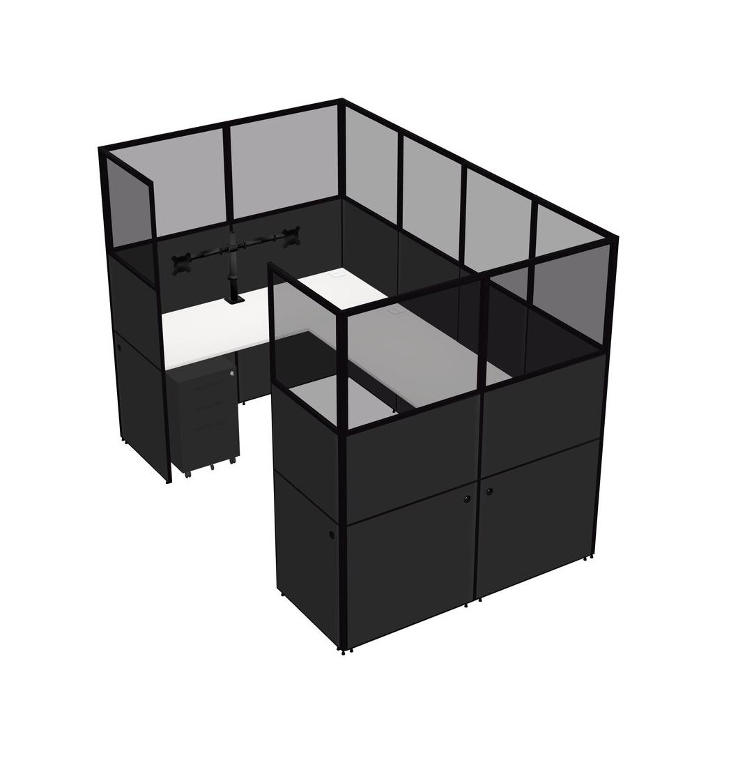 Système De Panneaux Blancs En U Pour 1 Personne + Bras D'écran (bras Doubles) + Tiroirs Mobiles En Métal Pour 1 Utilisateur(s)