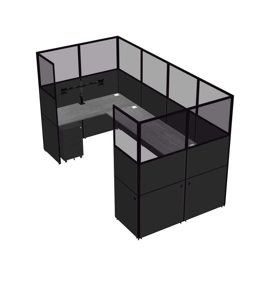 Système De Panneaux En U Gris Pour 1 Personne + Bras D'écran (bras Doubles) + Tiroirs Mobiles En Métal Pour 1 Utilisateur(s)
