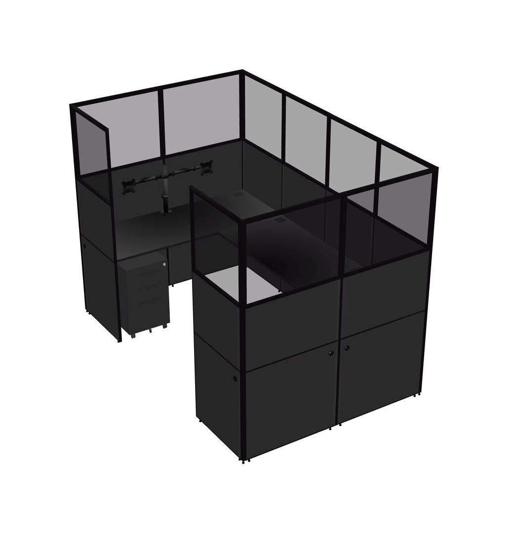 Système De Panneaux En U Noir Pour 1 Personne + Bras D'écran (bras Doubles) + Tiroirs Mobiles En Métal Pour 1 Utilisateur(s)