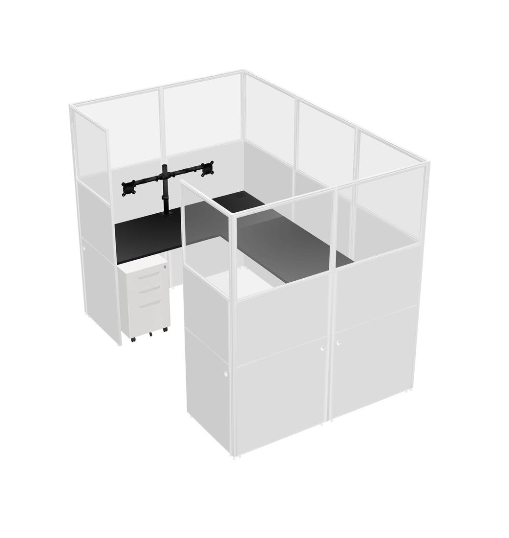 Système De Panneaux En U Noir Pour 1 Personne + Bras D'écran (bras Doubles) + Tiroirs Mobiles En Métal Pour 1 Utilisateur(s)