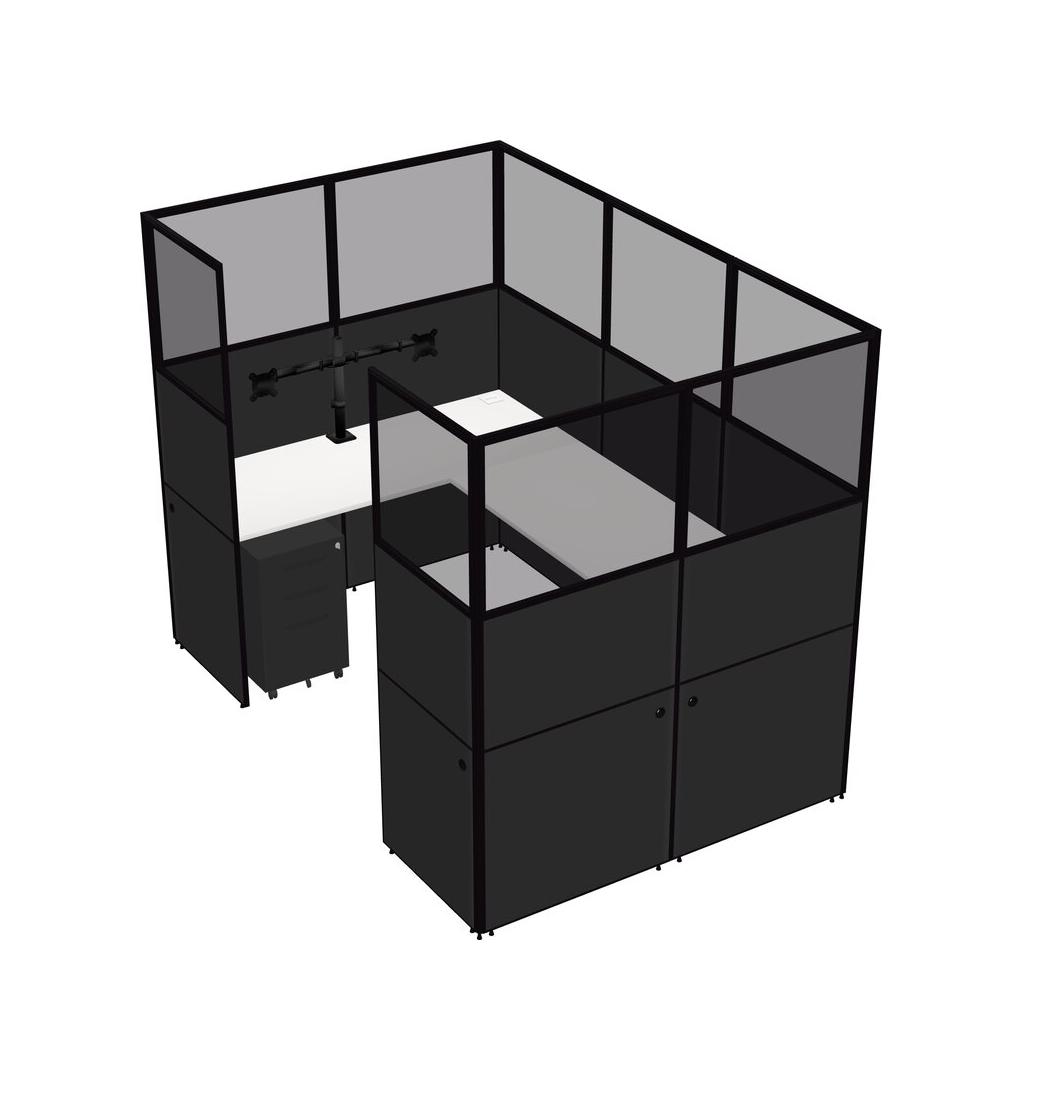 Système De Panneaux Blancs En U Pour 1 Personne + Bras D'écran (bras Doubles) + Tiroirs Mobiles En Métal Pour 1 Utilisateur(s)