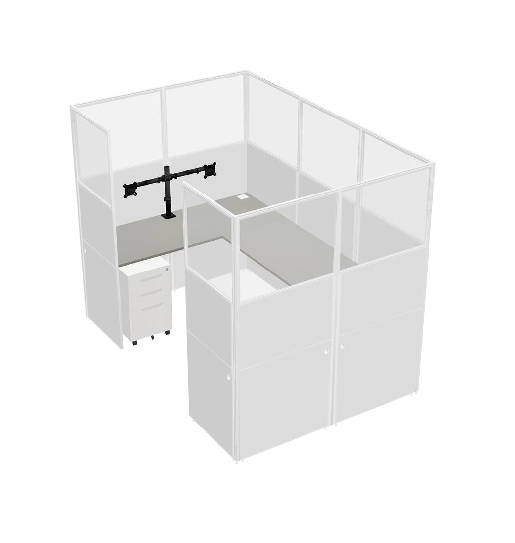 Système De Panneaux En U Grey Shadows Pour 1 Personne + Bras D'écran (bras Doubles) + Tiroirs Mobiles En Métal Pour 1 Utilisateur(s)