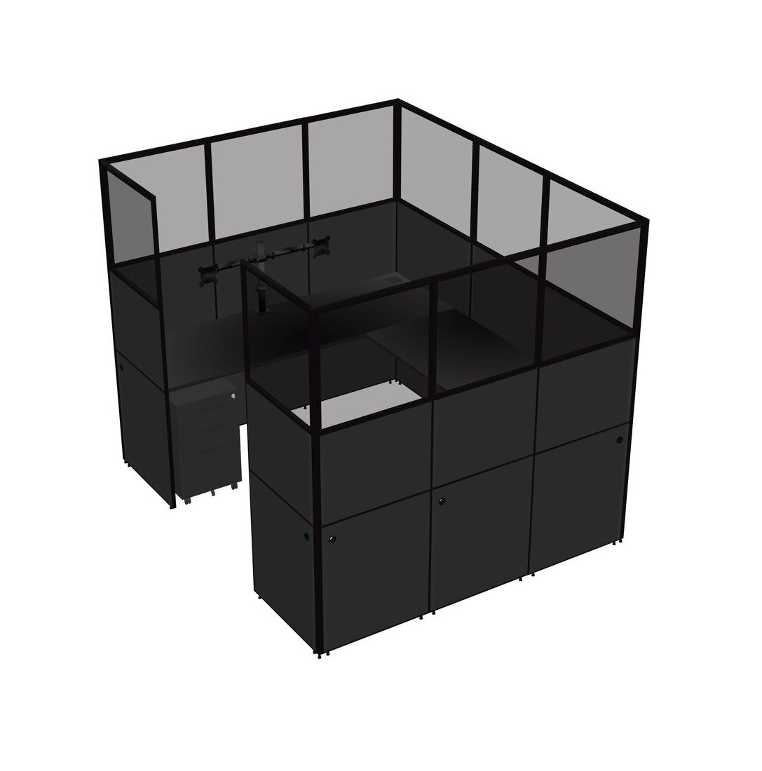 Système De Panneaux En U Noir Pour 1 Personne + Bras D'écran (bras Doubles) + Tiroirs Mobiles En Métal Pour 1 Utilisateur(s)