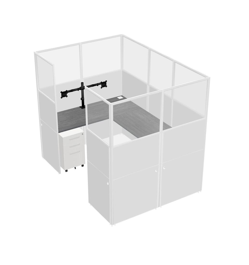 Système De Panneaux En U Gris Pour 1 Personne + Bras D'écran (bras Doubles) + Tiroirs Mobiles En Métal Pour 1 Utilisateur(s)