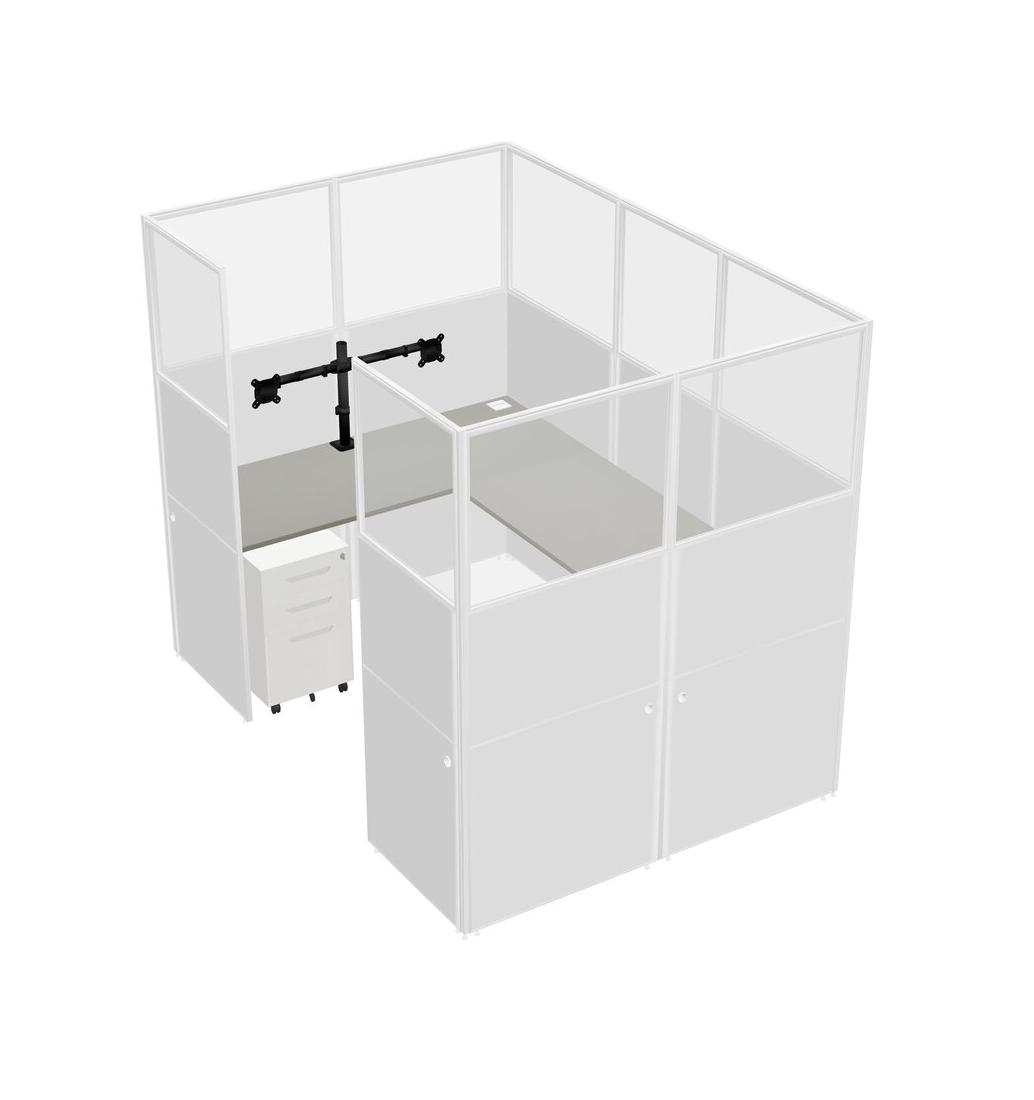 Système De Panneaux En U Grey Shadows Pour 1 Personne + Bras D'écran (bras Doubles) + Tiroirs Mobiles En Métal Pour 1 Utilisateur(s)