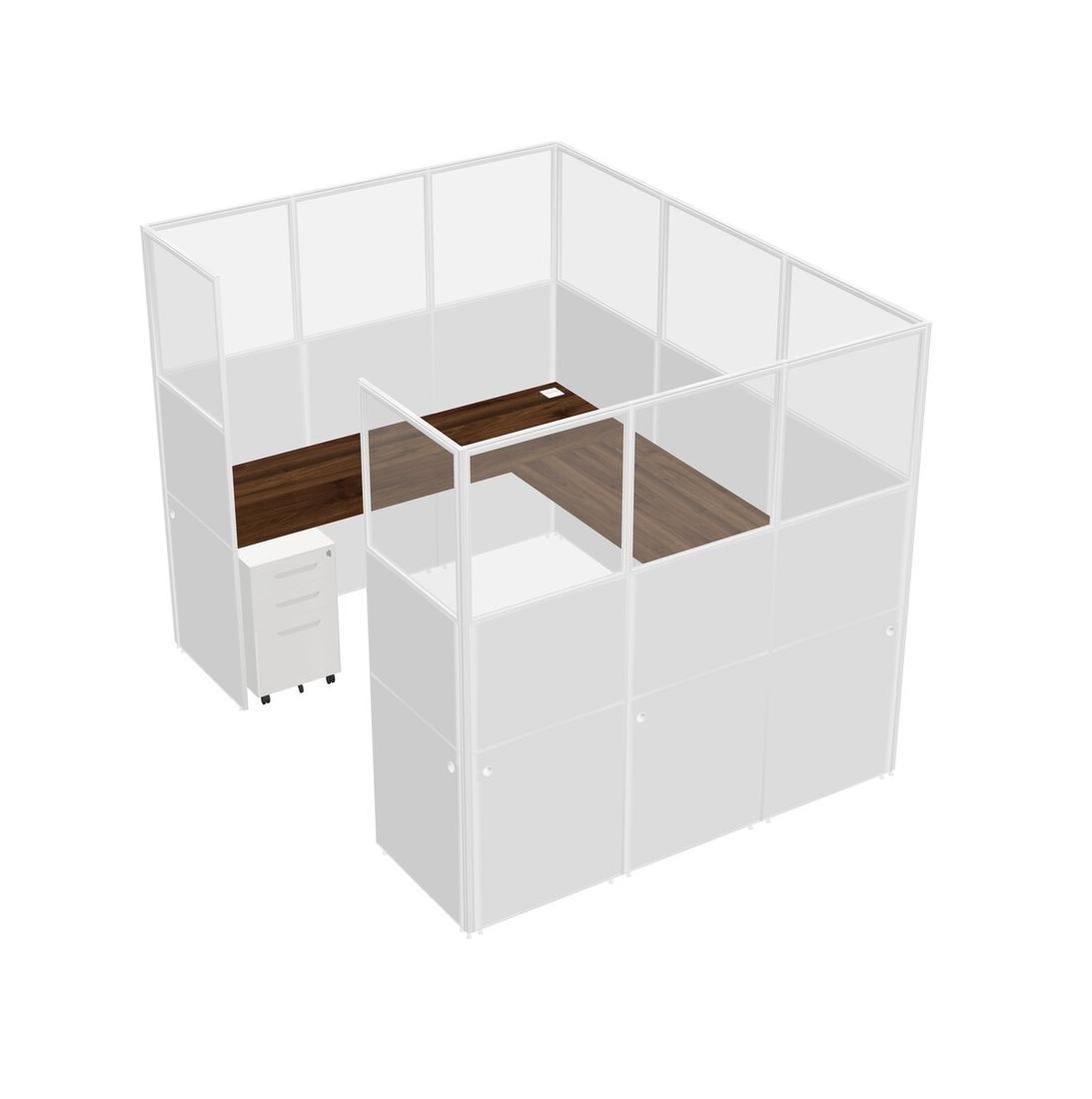 Système De Panneaux En U En Noyer Columbia Pour 1 Personne + Tiroirs Mobiles En Métal Pour 1 Utilisateur(s)