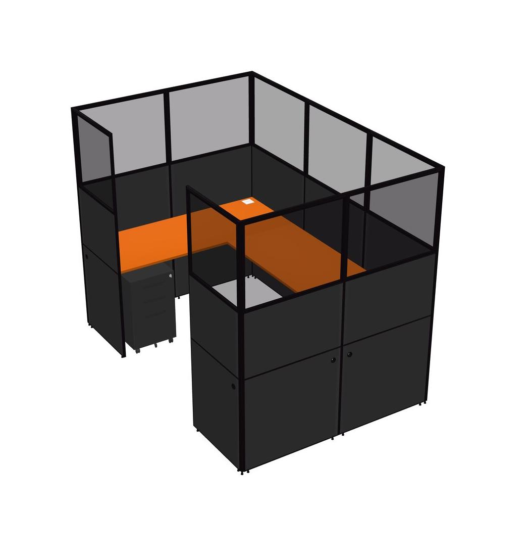 Système De Panneaux En U Orange Pour 1 Personne + Tiroirs Mobiles En Métal Pour 1 Utilisateur(s)