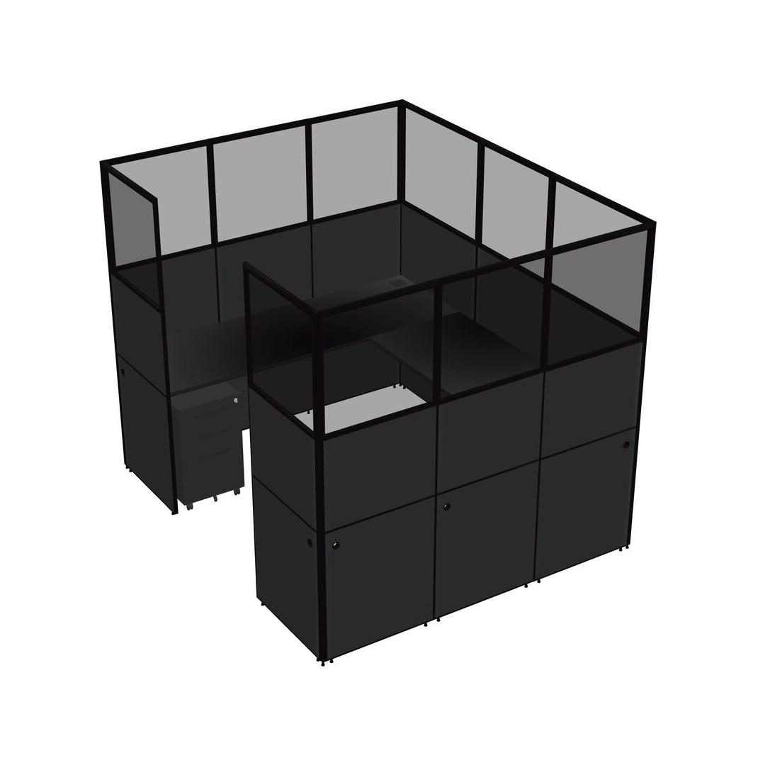 Système De Panneaux En U Noir Pour 1 Personne + Tiroirs Mobiles En Métal Pour 1 Utilisateur(s)