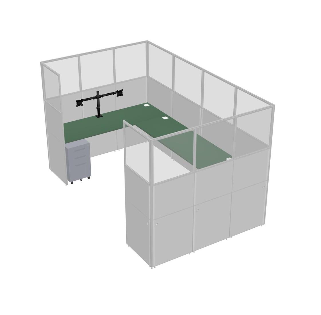 Système De Panneaux Verts En U Pour 1 Personne + Bras D'écran (bras Doubles) + Tiroirs Mobiles En Métal Pour 1 Utilisateur(s)