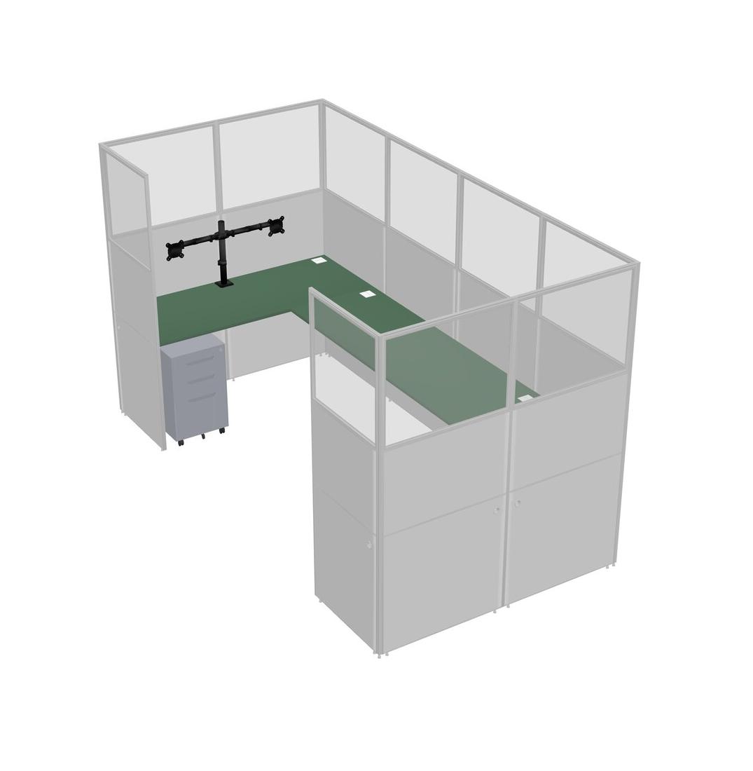 Système De Panneaux Verts En U Pour 1 Personne + Bras D'écran (bras Doubles) + Tiroirs Mobiles En Métal Pour 1 Utilisateur(s)