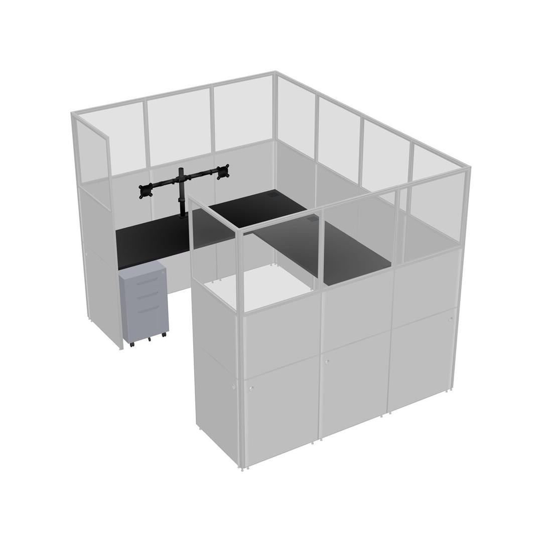 Système De Panneaux En U Noir Pour 1 Personne + Bras D'écran (bras Doubles) + Tiroirs Mobiles En Métal Pour 1 Utilisateur(s)