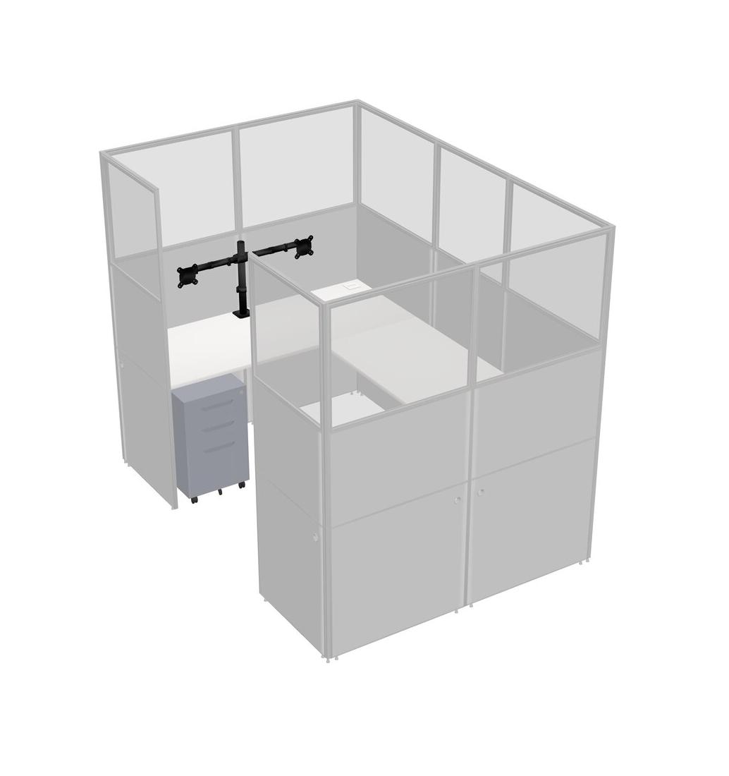 Système De Panneaux Blancs En U Pour 1 Personne + Bras D'écran (bras Doubles) + Tiroirs Mobiles En Métal Pour 1 Utilisateur(s)