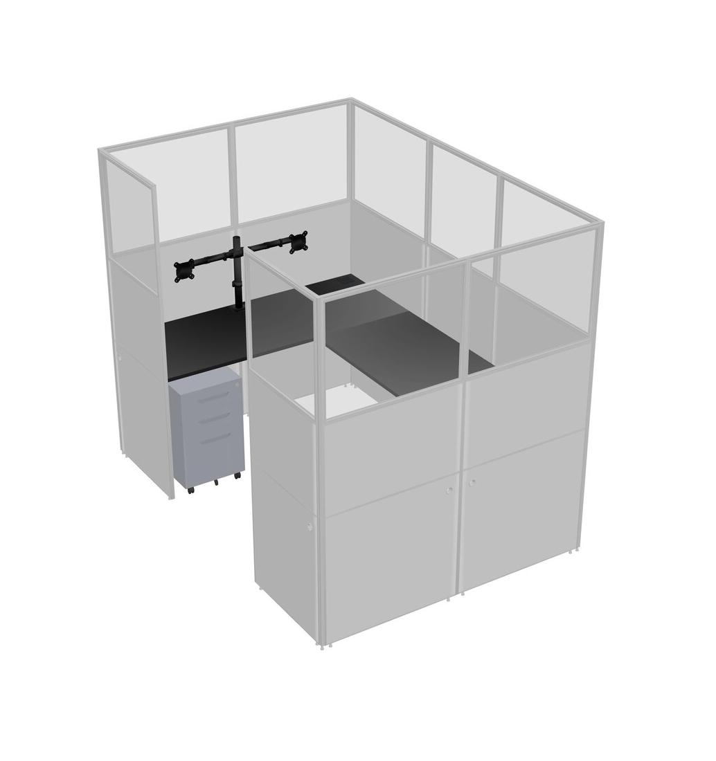 Système De Panneaux En U Noir Pour 1 Personne + Bras D'écran (bras Doubles) + Tiroirs Mobiles En Métal Pour 1 Utilisateur(s)