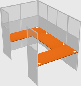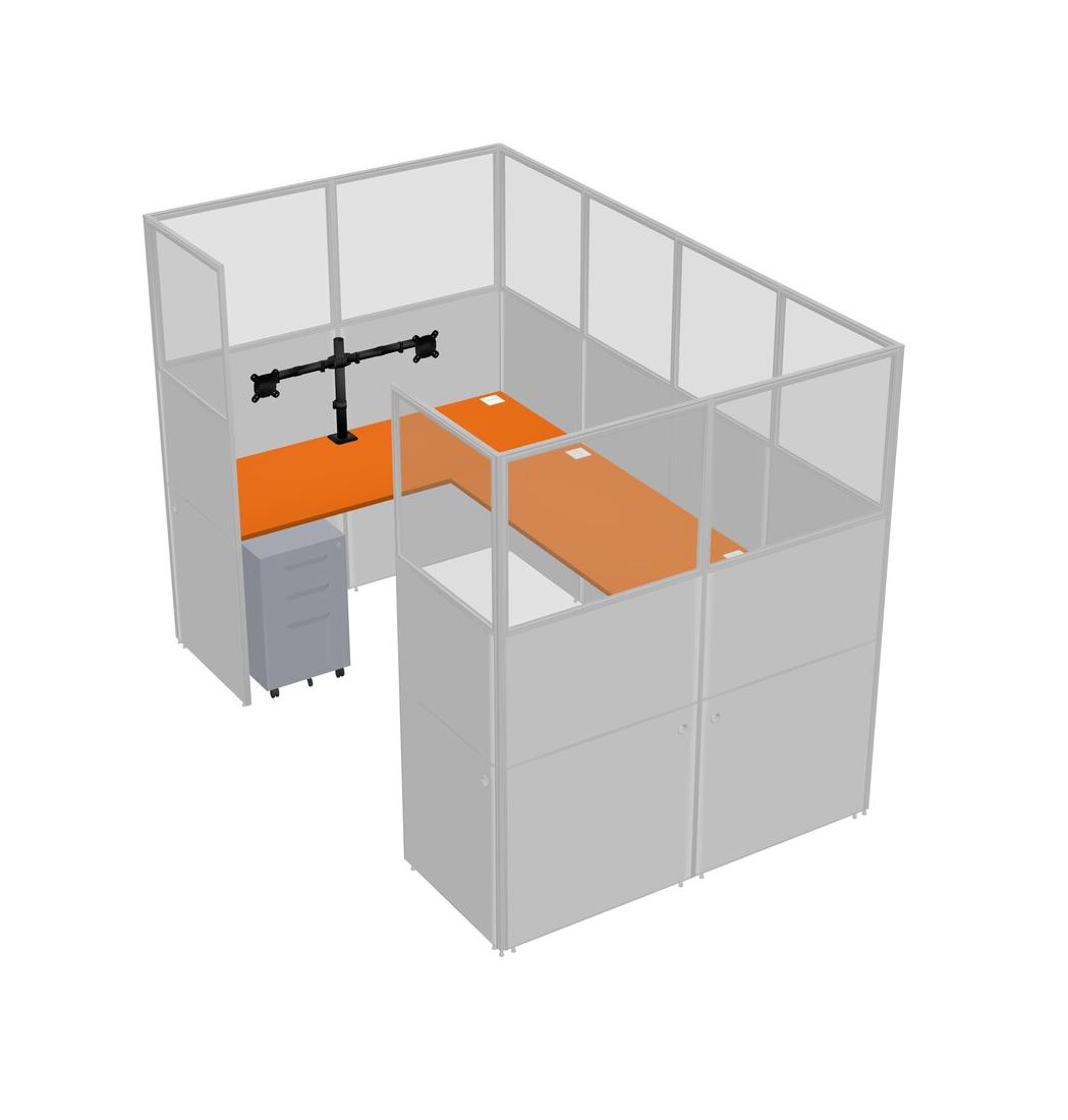 Système De Panneau En U Orange Pour 1 Personne + Bras D'écran (bras Doubles) + Tiroirs Mobiles En Métal Pour 1 Utilisateur(s)