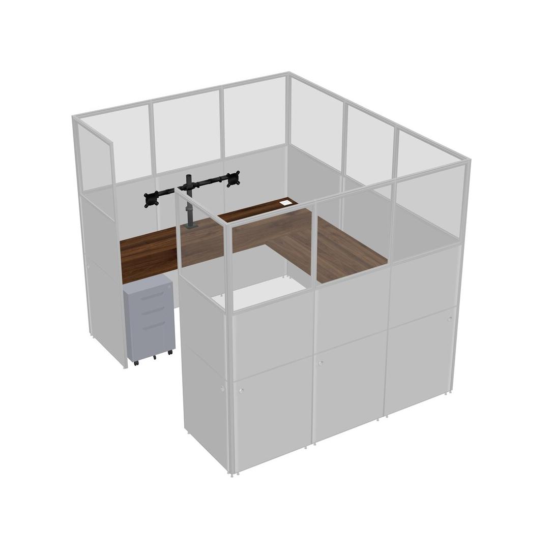 Système De Panneaux En U En Noyer Columbia Pour 1 Personne + Bras D'écran (bras Doubles) + Tiroirs Mobiles En Métal Pour 1 Utilisateur(s)