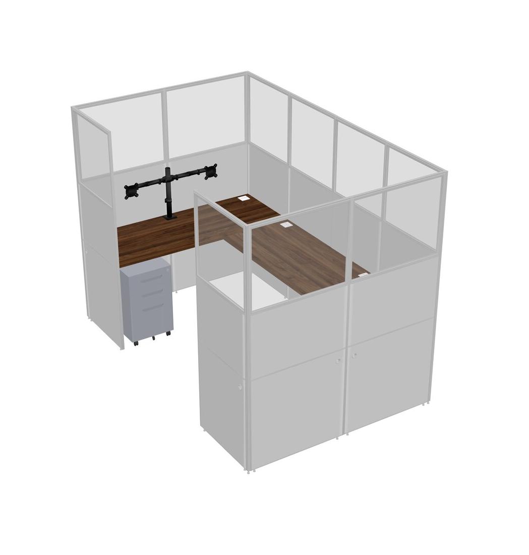 Système De Panneaux En U En Noyer Columbia Pour 1 Personne + Bras D'écran (bras Doubles) + Tiroirs Mobiles En Métal Pour 1 Utilisateur(s)