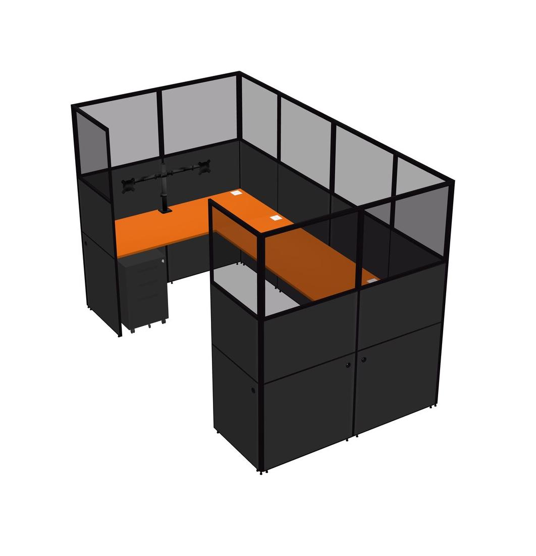 Système De Panneau En U Orange Pour 1 Personne + Bras D'écran (bras Doubles) + Tiroirs Mobiles En Métal Pour 1 Utilisateur(s)
