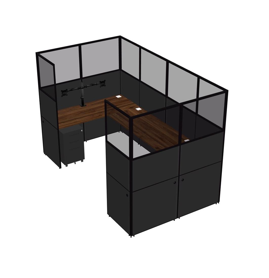 Système De Panneaux En U En Noyer Columbia Pour 1 Personne + Bras D'écran (bras Doubles) + Tiroirs Mobiles En Métal Pour 1 Utilisateur(s)