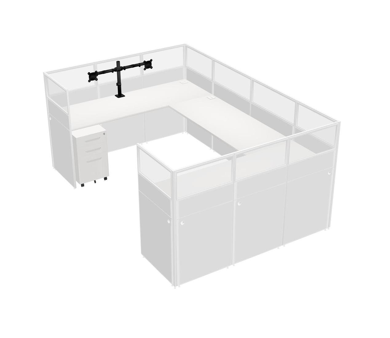 Système De Panneaux Blancs En U Pour 1 Personne + Bras D'écran (bras Doubles) + Tiroirs Mobiles En Métal Pour 1 Utilisateur(s)