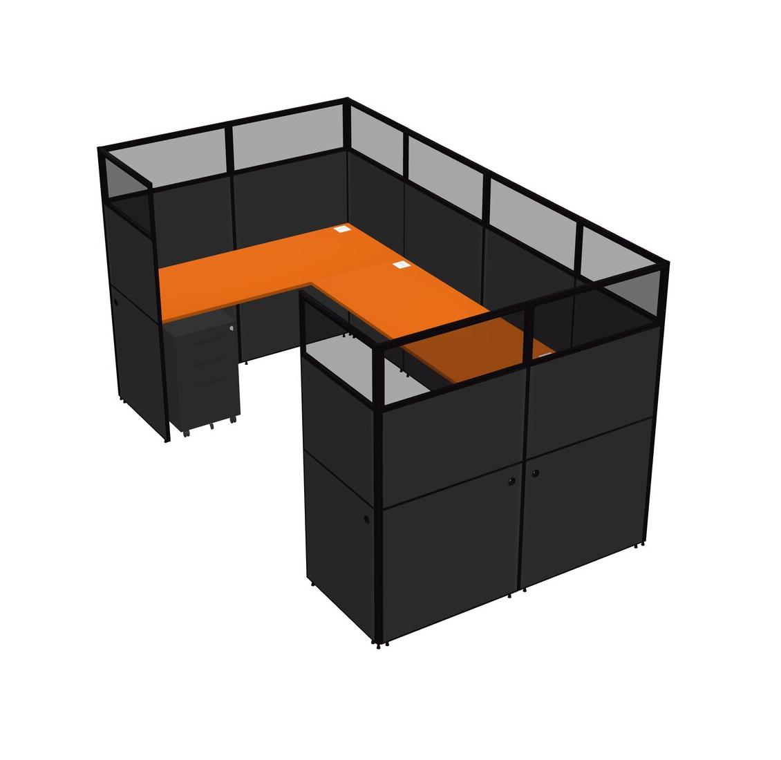 Système De Panneaux En U Orange Pour 1 Personne + Tiroirs Mobiles En Métal Pour 1 Utilisateur(s)