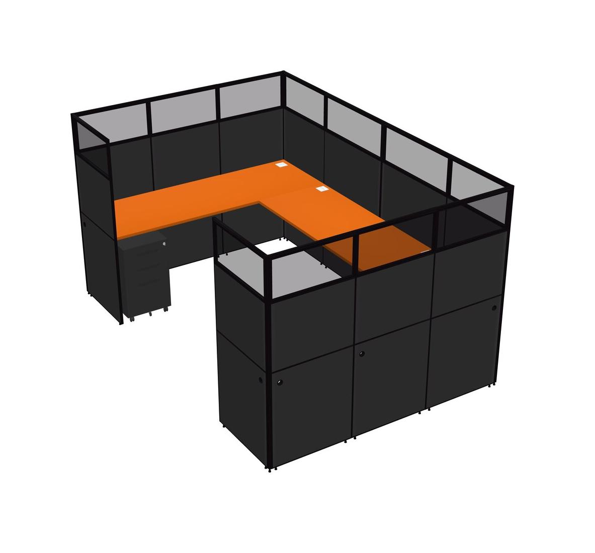 Système De Panneaux En U Orange Pour 1 Personne + Tiroirs Mobiles En Métal Pour 1 Utilisateur(s)