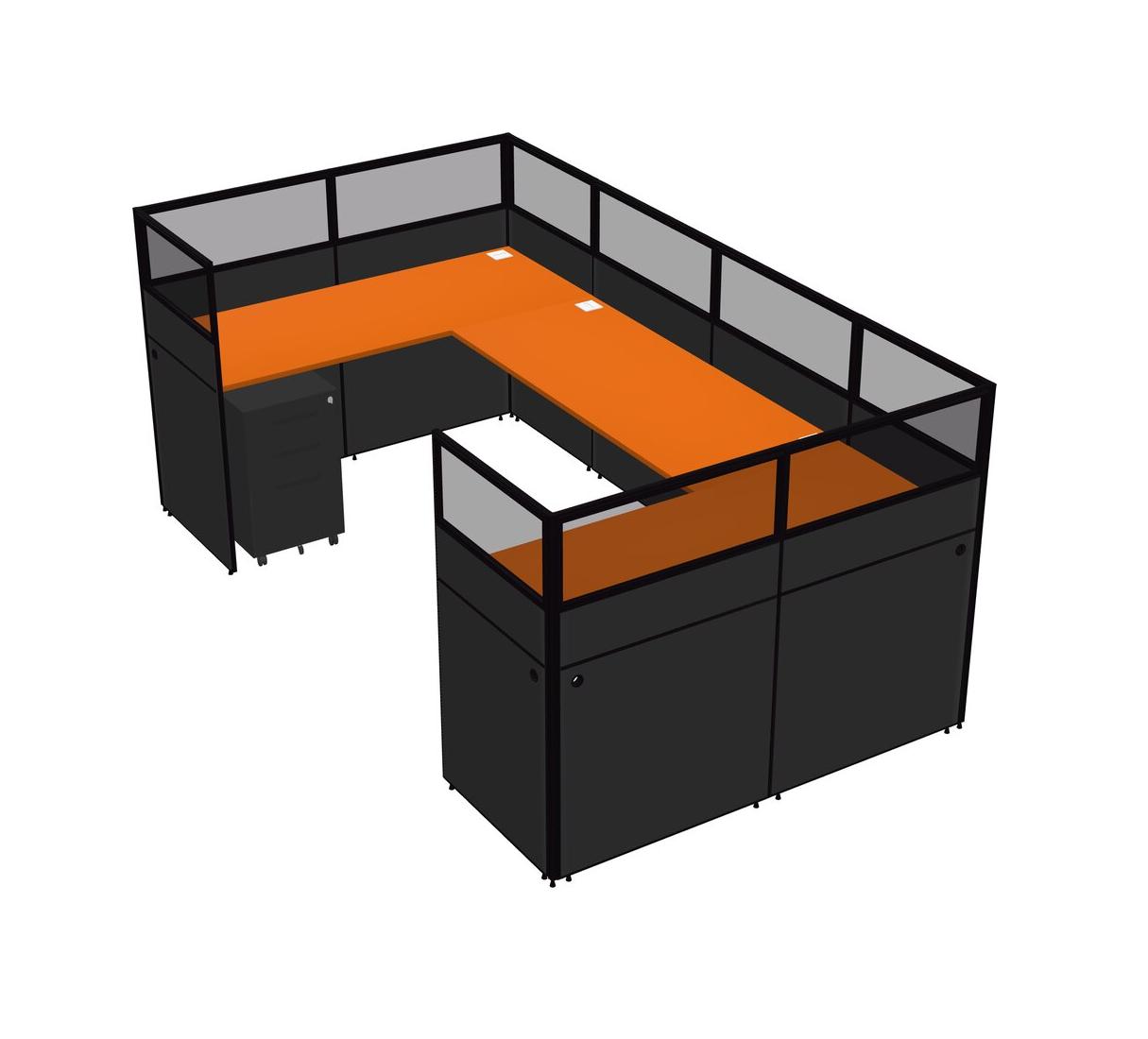 Système De Panneaux En U Orange Pour 1 Personne + Tiroirs Mobiles En Métal Pour 1 Utilisateur(s)