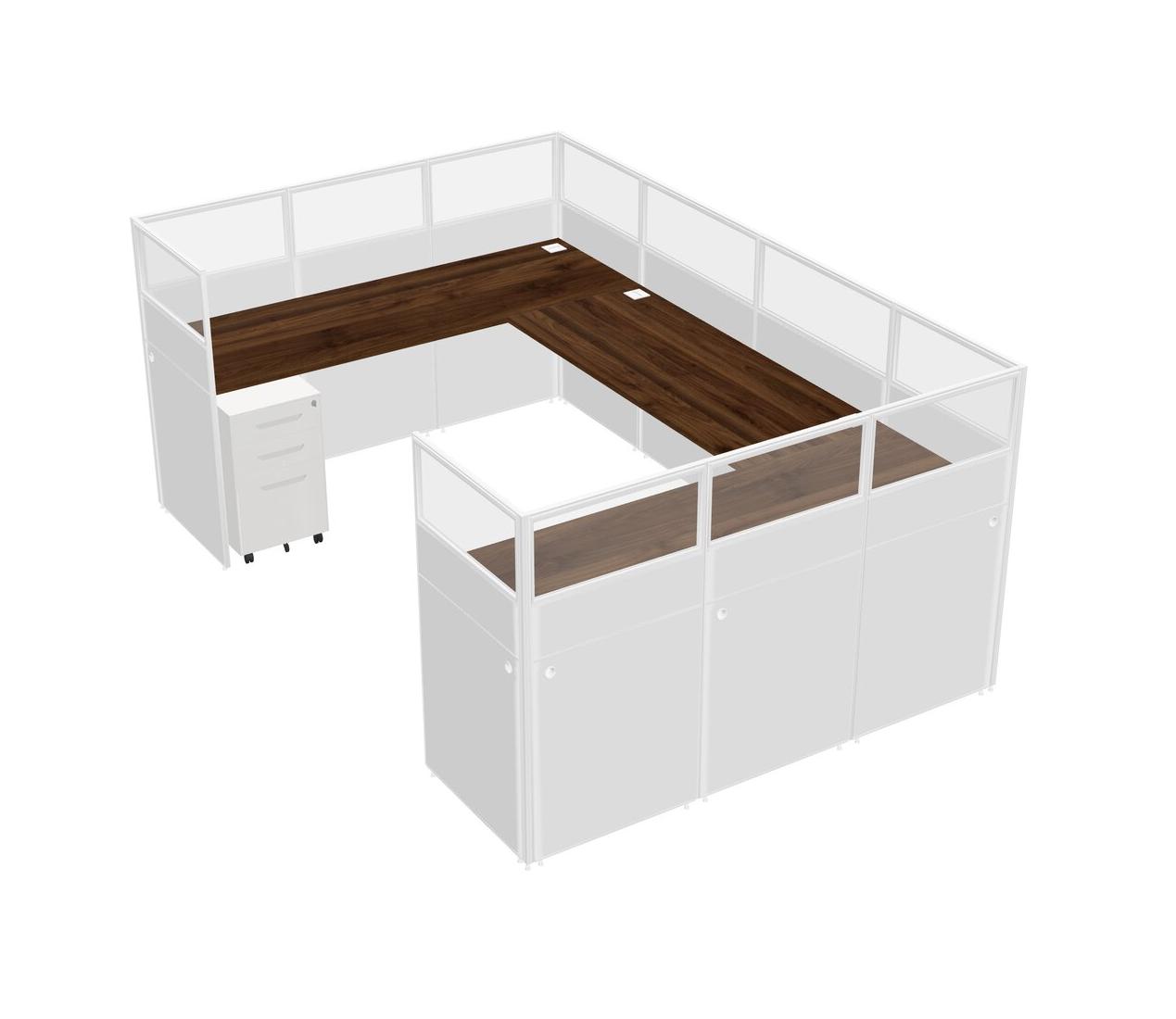 Système De Panneaux En U En Noyer Columbia Pour 1 Personne + Tiroirs Mobiles En Métal Pour 1 Utilisateur(s)