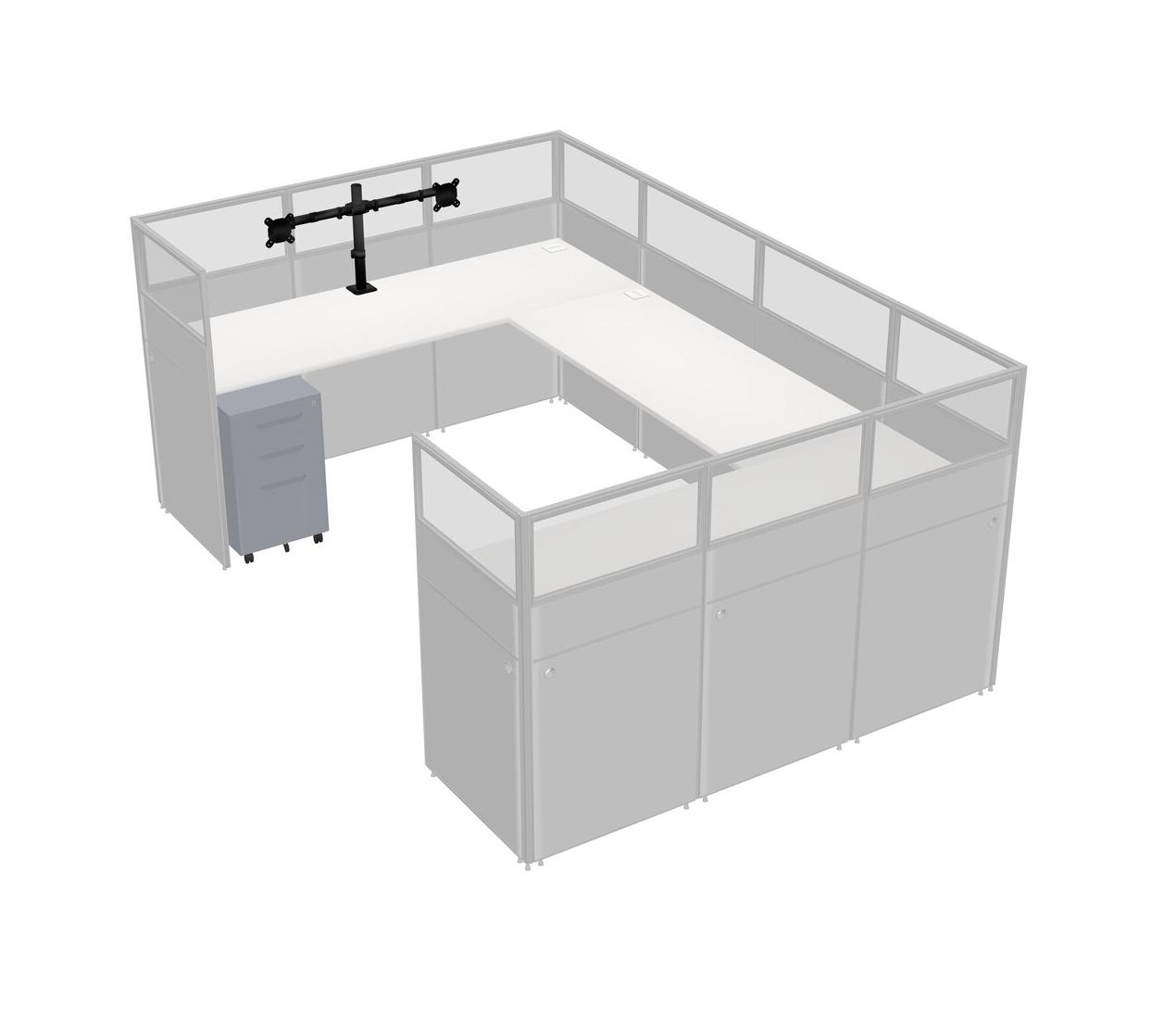 Système De Panneaux Blancs En U Pour 1 Personne + Bras D'écran (bras Doubles) + Tiroirs Mobiles En Métal Pour 1 Utilisateur(s)