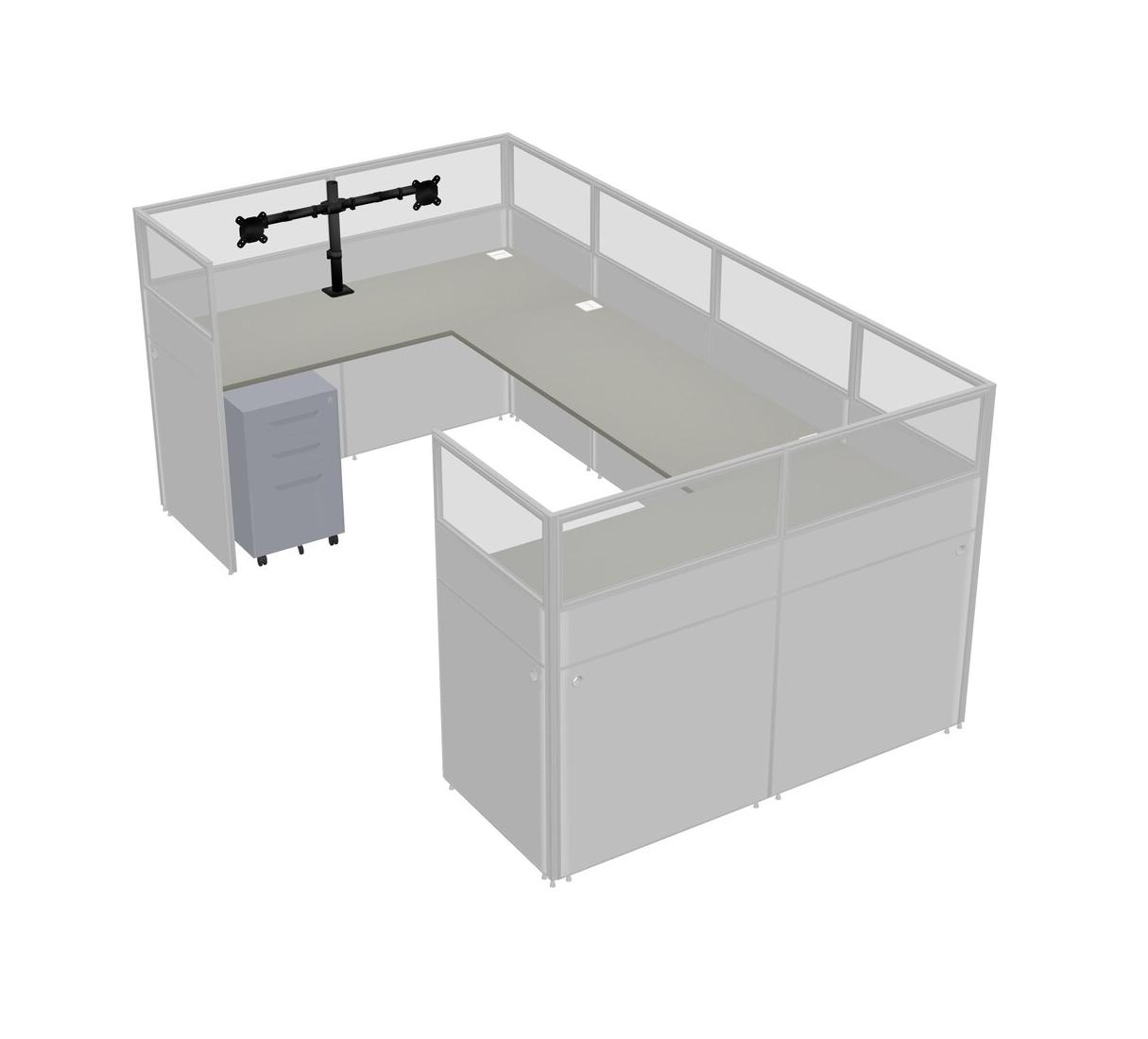 Système De Panneaux En U Grey Shadows Pour 1 Personne + Bras D'écran (bras Doubles) + Tiroirs Mobiles En Métal Pour 1 Utilisateur(s)