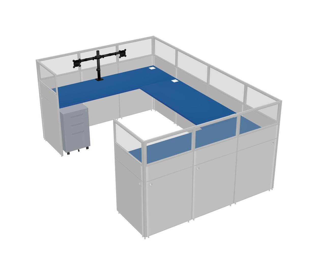 Système De Panneau En U Prism Blue Pour 1 Personne + Bras D'écran (bras Doubles) + Tiroirs Mobiles En Métal Pour 1 Utilisateur(s)