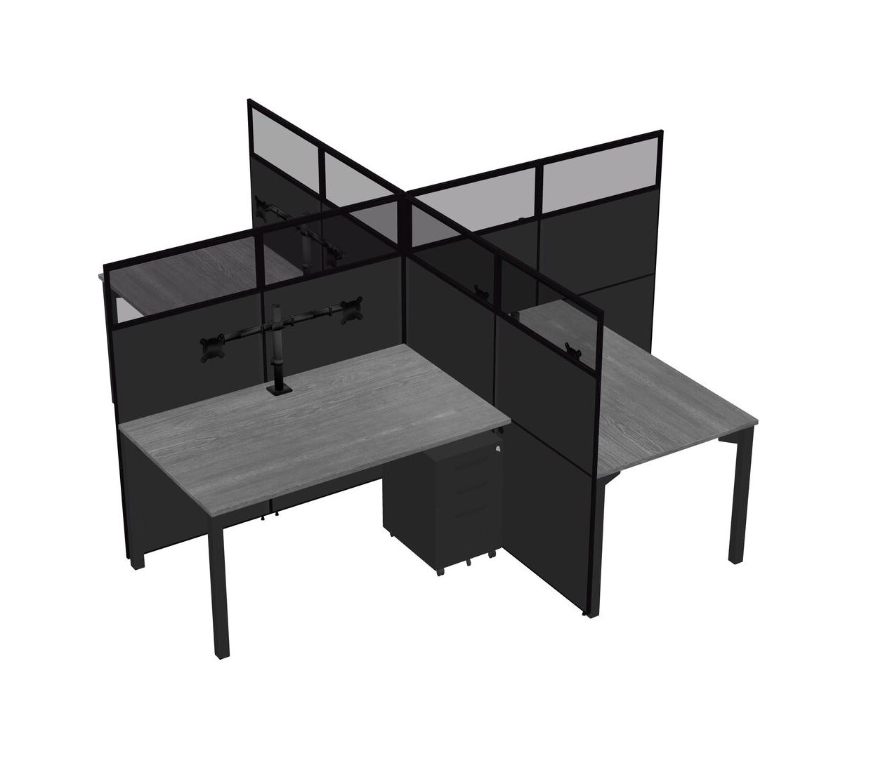 Postes De Travail Quadruples Gris Pour 4 Personnes + Tiroirs Mobiles En Métal Noir + Bras D'écran (bras Doubles)