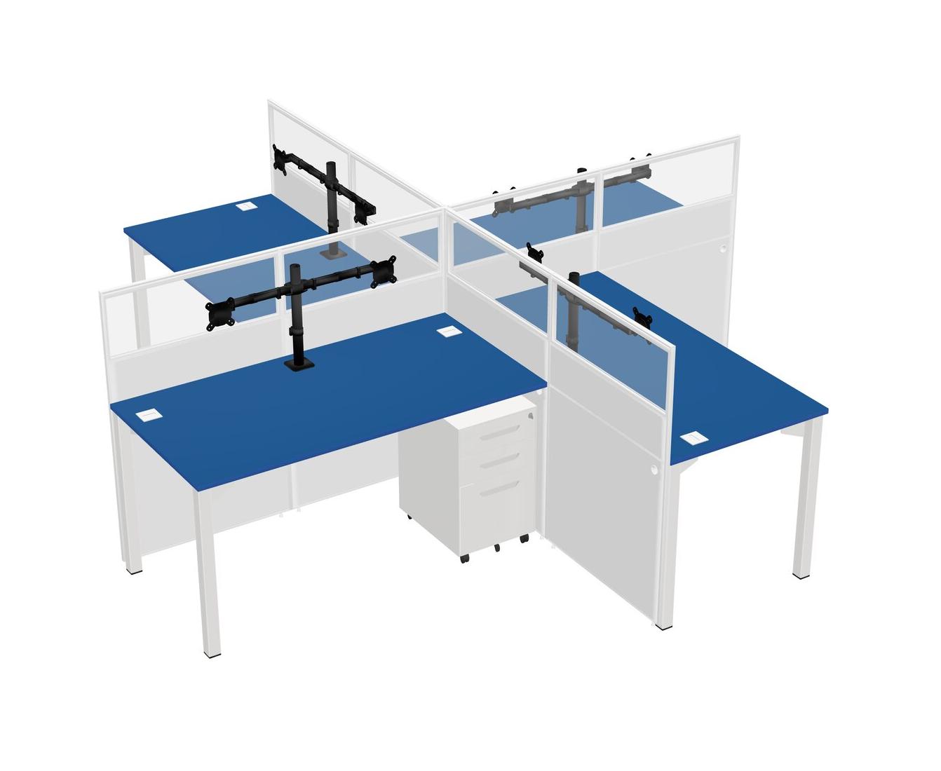 Postes De Travail Quadruples Prism Blue Pour 4 Personnes + Tiroirs Mobiles En Métal Blanc + Bras Pour écran (bras Doubles)
