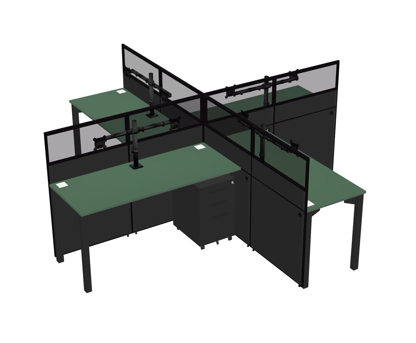 Postes De Travail Quadruples Verts Pour 4 Personnes + Tiroirs Mobiles En Métal Noir + Bras Pour écran (bras Doubles)