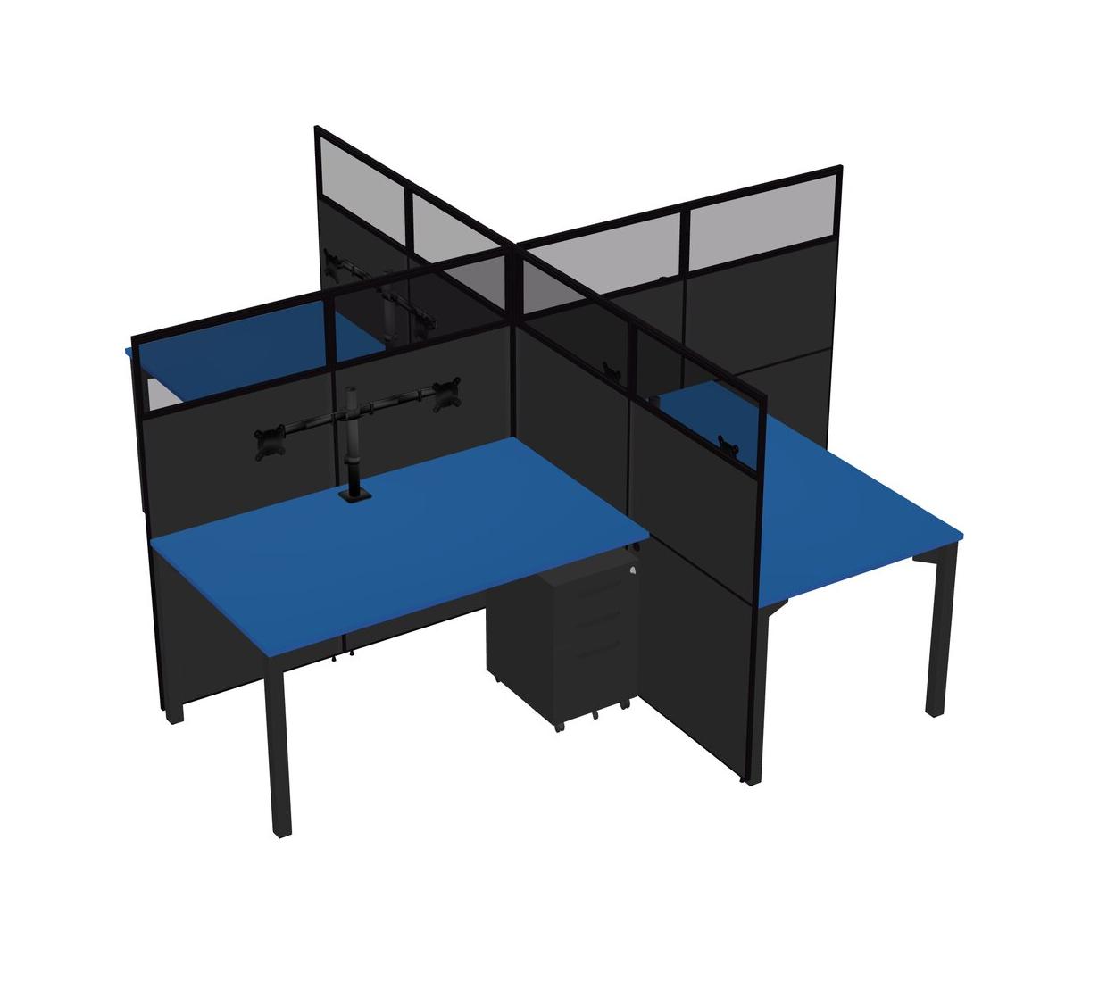 Postes De Travail Quadruples Prism Blue Pour 4 Personnes + Tiroirs Mobiles En Métal Noir + Bras Pour écran (bras Doubles)