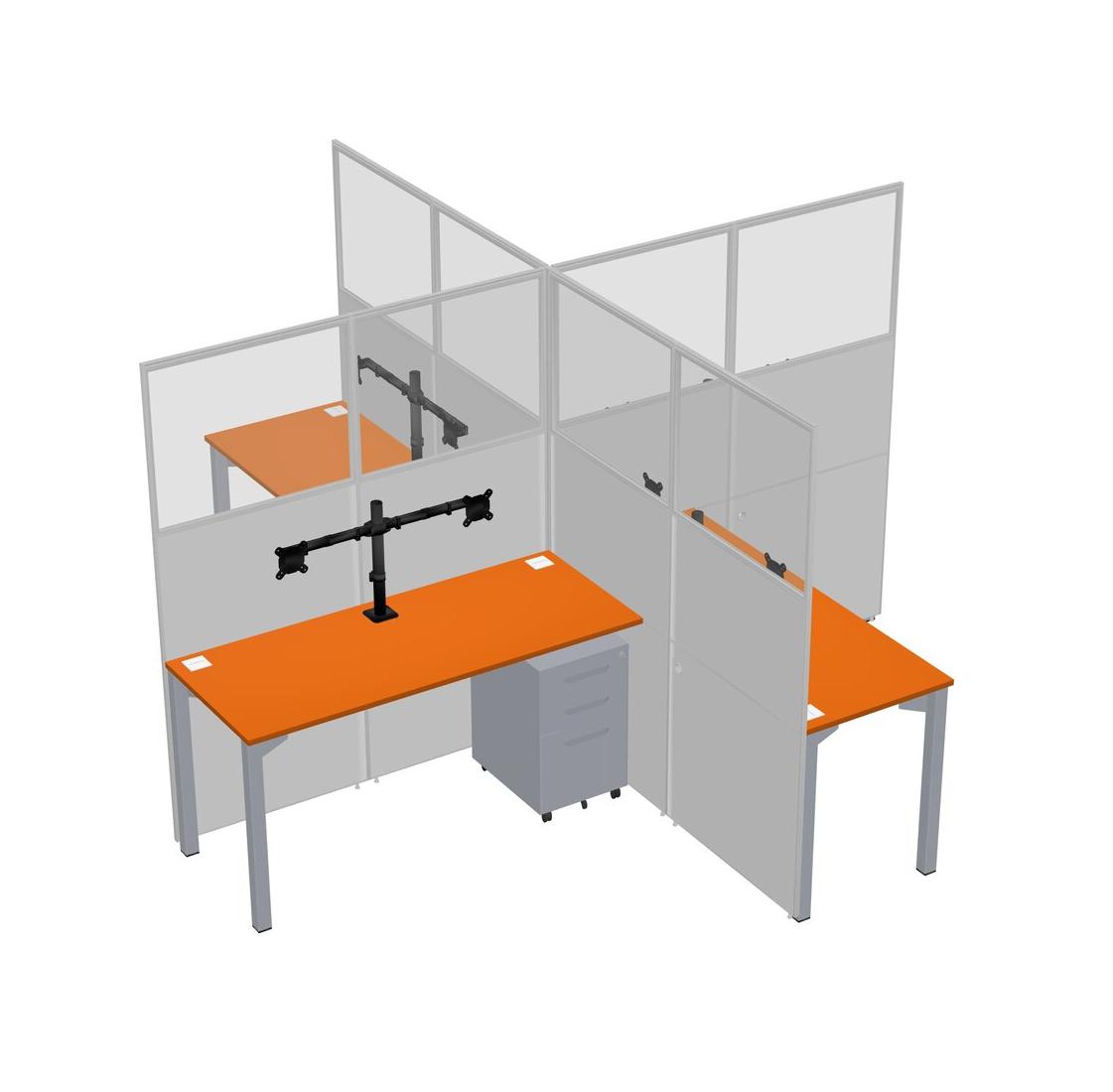 Postes De Travail Quadruples Orange Pour 4 Personnes + Tiroirs Mobiles En Métal Gris + Bras Pour écran (bras Doubles)