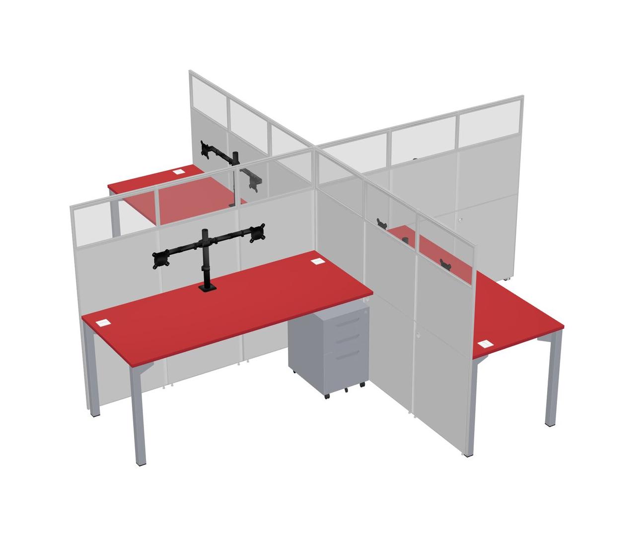 Postes De Travail Quadruples Prism Red Pour 4 Personnes + Tiroirs Mobiles En Métal Gris + Bras Pour écran (bras Doubles)