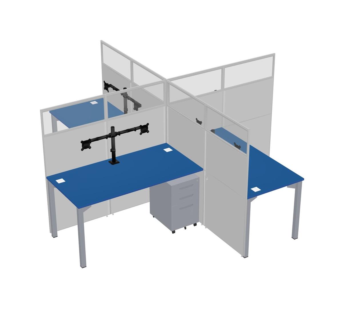 Postes De Travail Quadruples Prism Blue Pour 4 Personnes + Tiroirs Mobiles En Métal Gris + Bras Pour écran (bras Doubles)