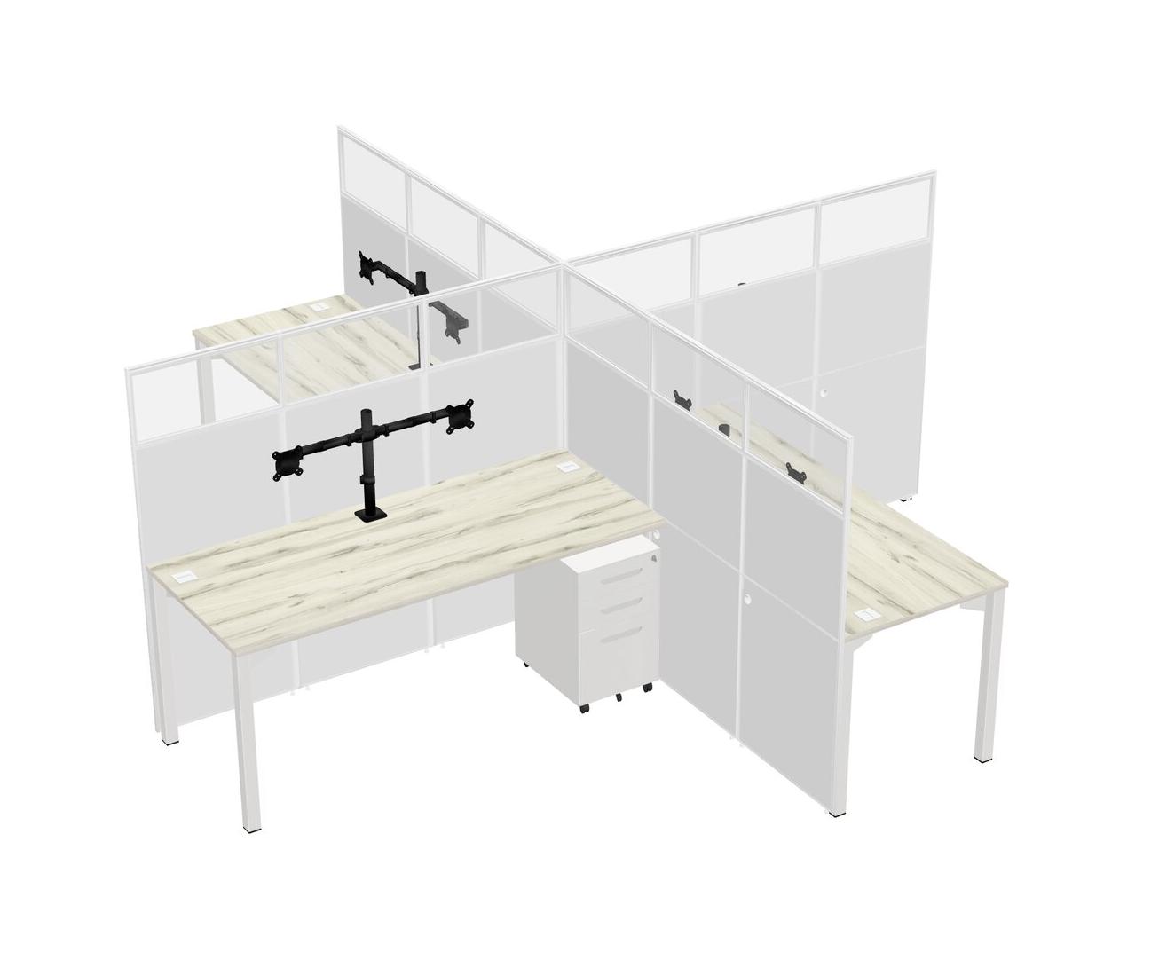 Postes De Travail Heinne Holz Quad Pour 4 Personnes + Tiroirs Mobiles En Métal Blanc + Bras Pour écran (bras Doubles)