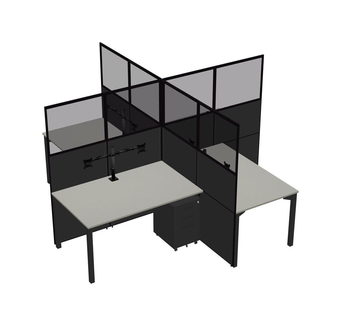 Postes De Travail Quadruples Grey Shadows Pour 4 Personnes + Tiroirs Mobiles En Métal Noir + Bras Pour écran (bras Doubles)