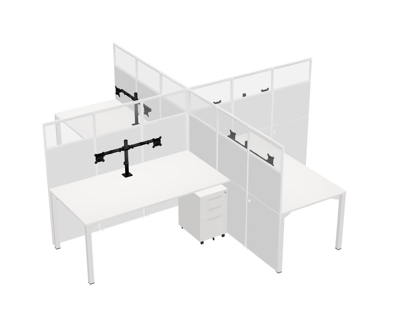 Postes De Travail Quadruples Blancs Pour 4 Personnes + Tiroirs Mobiles En Métal Blanc + Bras Pour écran (bras Doubles)