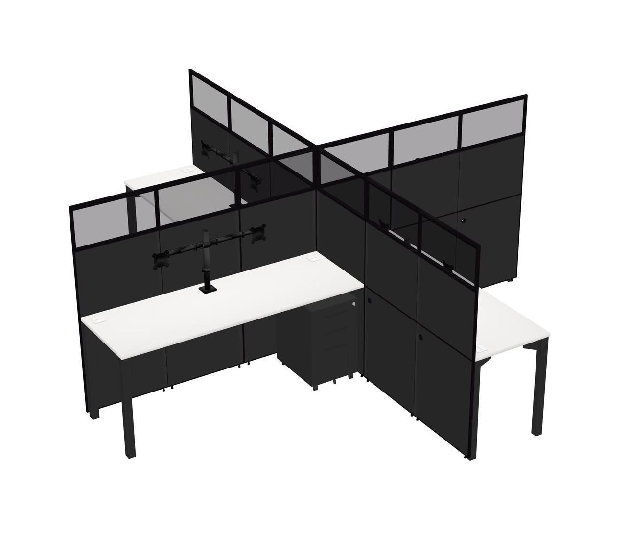Postes De Travail Quadruples Blancs Pour 4 Personnes + Tiroirs Mobiles En Métal Noir + Bras Pour écran (bras Doubles)