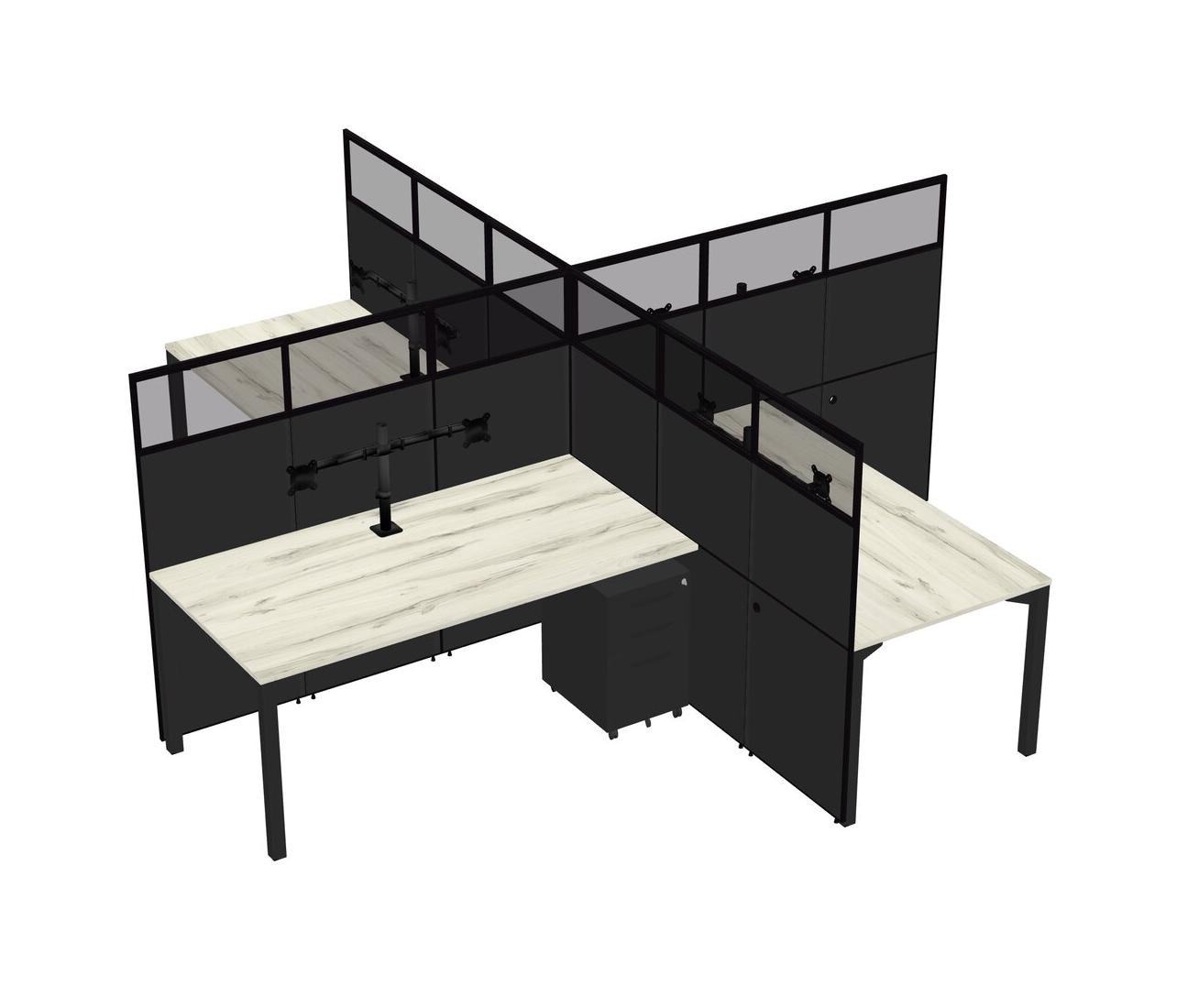 Postes De Travail Heinne Holz Quad Pour 4 Personnes + Tiroirs Mobiles En Métal Noir + Bras Pour écran (bras Doubles)